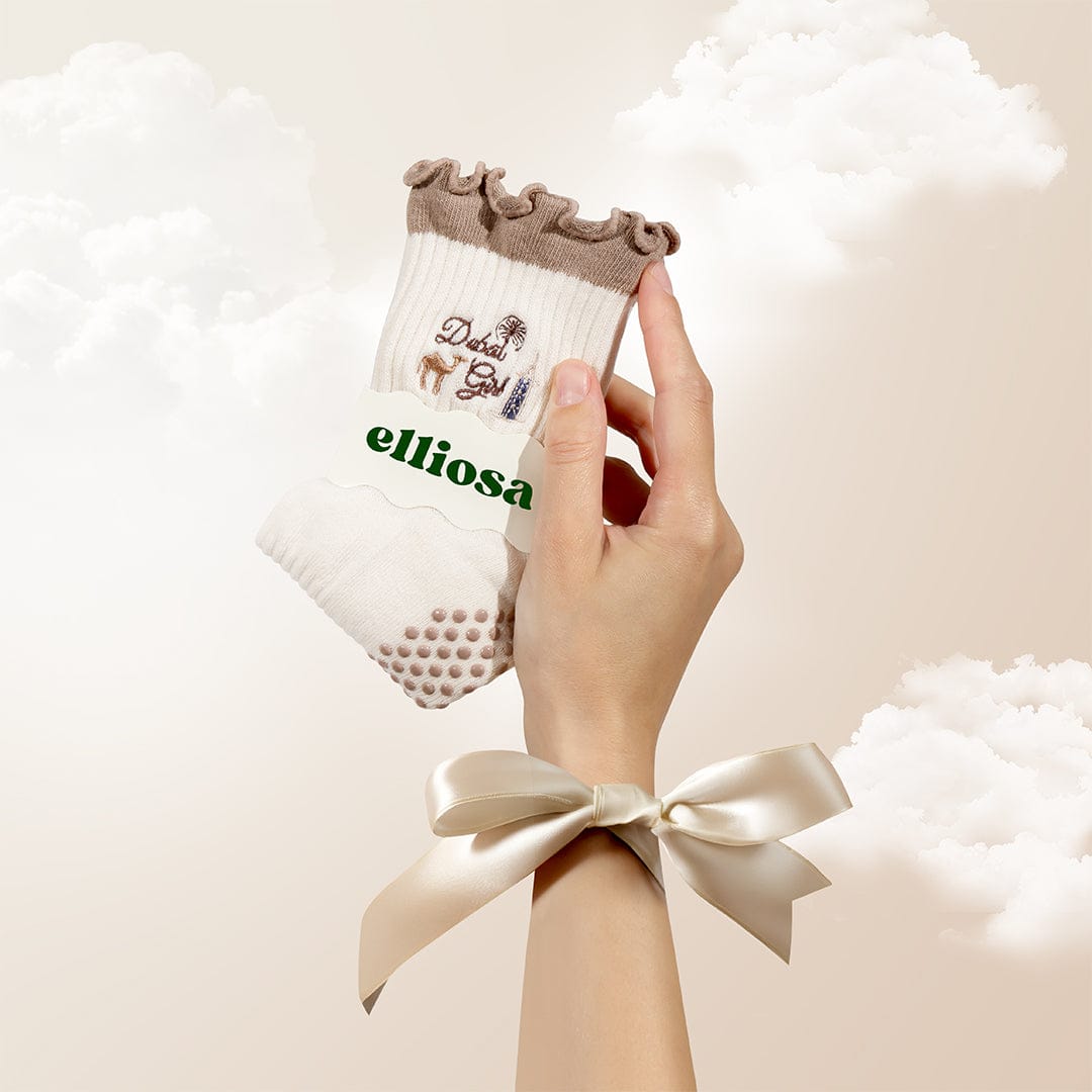Bring Dubai vibes to your workout with our Dubai Girl Socks - where luxury meets cute embroidery and jet-setter energy. Designed with the iconic Burj Al Arab, adorable camels, and the famous Palm Jumeirah, plus a delicate bow on the back, they're made for the girl who loves to travel, dreams big, and brings confident energy everywhere she goes.